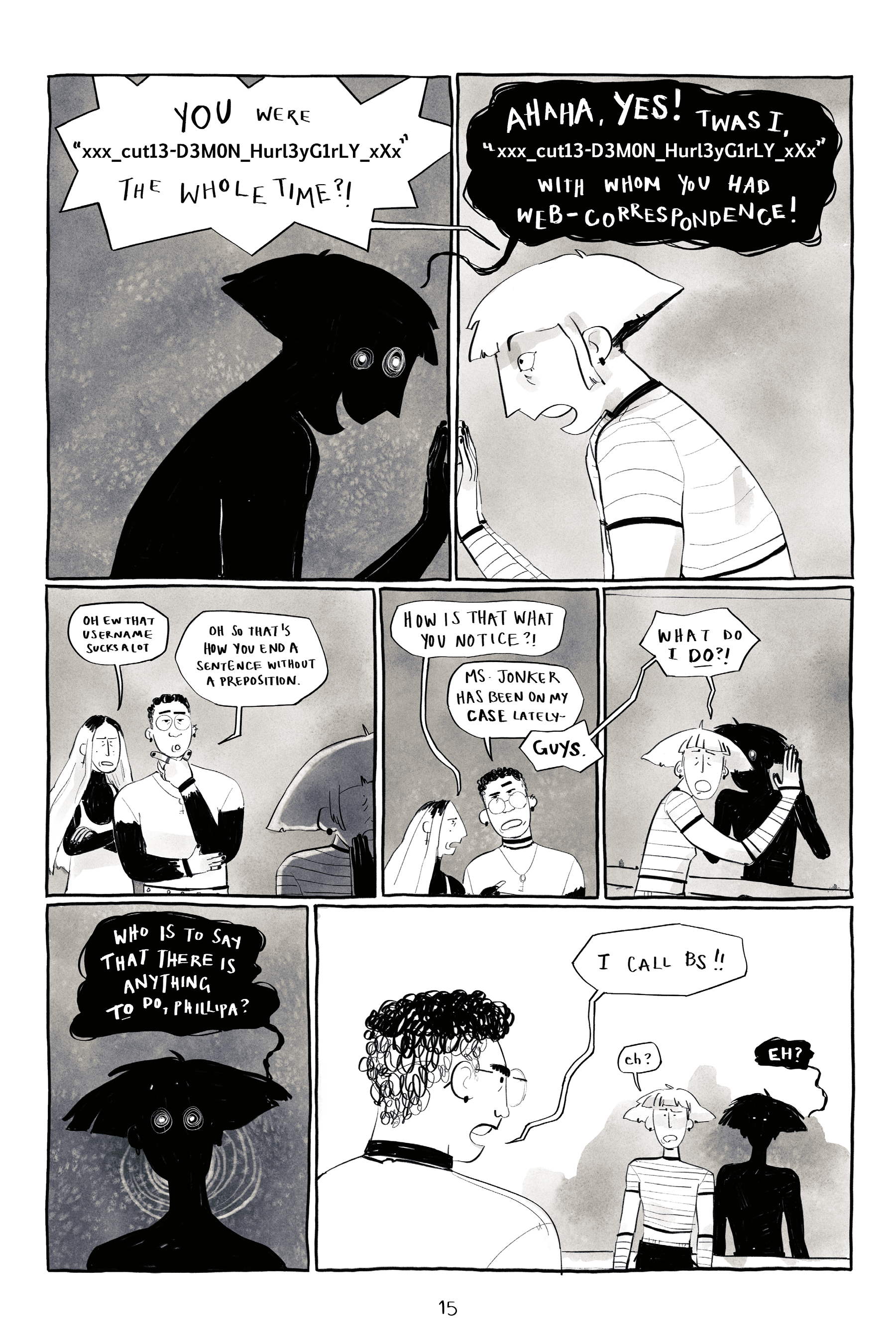 Phillipa Fairuza Gets Fractured!, 2023 Phillipa “Pip” Fairuza gets possessed by a demon in a summoning gone wrong, and her and her friends must do whatever it takes to exorcise her in time for their history test. A 63-page comic and my Sheridan narrative capstone project. Read the full comic here.
